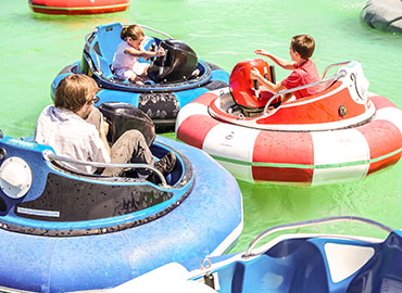 Batten down the hatches, captain! High-seas excitement is found right here, matey! Pilot your bumper boat through 100,000 gallons of splashing water on our exciting ride fit for the whole family! Each bumper boat is equipped with its own squirt gun – so if the splashes don’t get ‘em your squirt gun can!